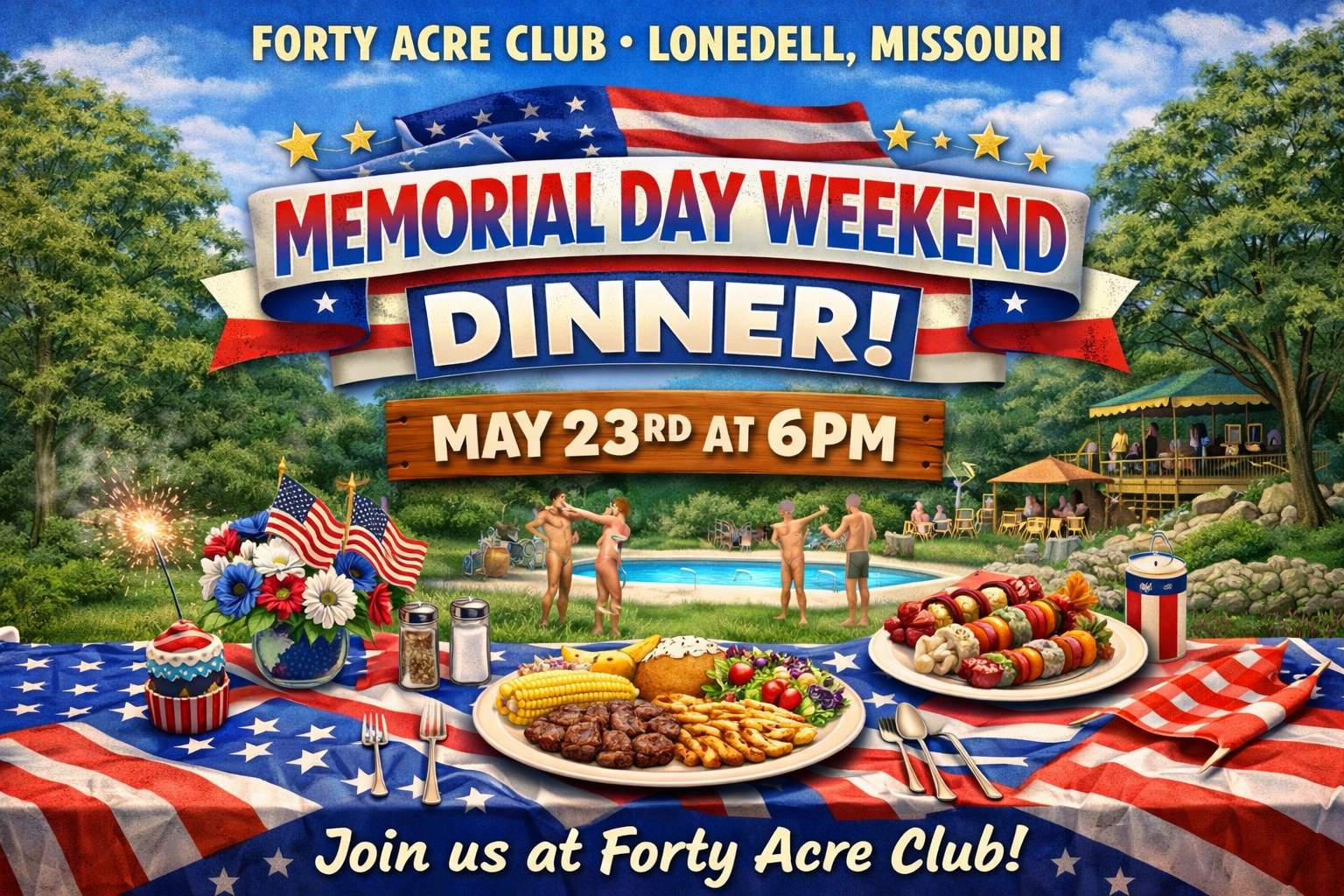 This Memorial Day, the Forty Acre Club in Lonedell, MO, is stripping down traditions for a weekend of unbridled fun! It's time to shed your layers (all of them!) and join us for a spectacular series of nude events. Bring the whole family and experience the freedom of our nudist club. Here’s what’s on the bare-it-all agenda: